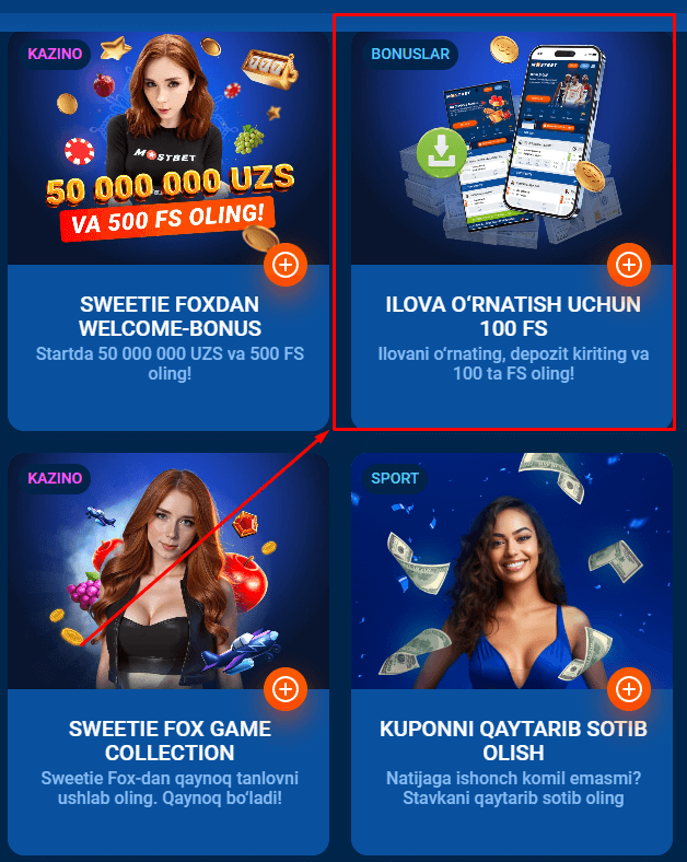 Mostbet O‘zbekistonda o‘yinchilar uchun qulay mobil ilova taklif qiladi. Uni o‘rnatgan va depozit kiritgan yangi foydalanuvchilar 100 ta bepul frispin olishlari mumkin. Bu bonus orqali mashhur slotlarni xavfsiz sinash mumkin.